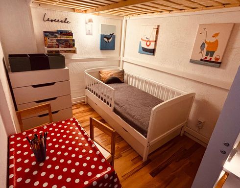 Inzwischen haben wir die Wohnung von meinen Eltern übernommen und werden sie ab 2026 offiziell an euch vermieten. Auf den kommenden Seiten findet ihr erste Fotos. Ende 2025 werden wir noch einmal teilrenovieren: Das Kinderzimmer wird neu gestaltet, im Bad einiges modernisiert. Bis 2026 können sich also noch Details verändern und weiter verbessern. – seid gespannt!
